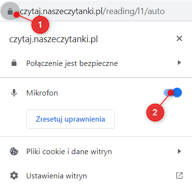 Kliknij ikonkę kłódki na pasku adresu i upewnij się, że mikrofon jest włączony: