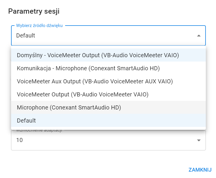 Jeśli wskaźnik pozostaje nieruchomy, należy wybrać inne źródło dźwięku. W zależności od konfiguracji (zainstalowane urządzenia i oprogramowanie),