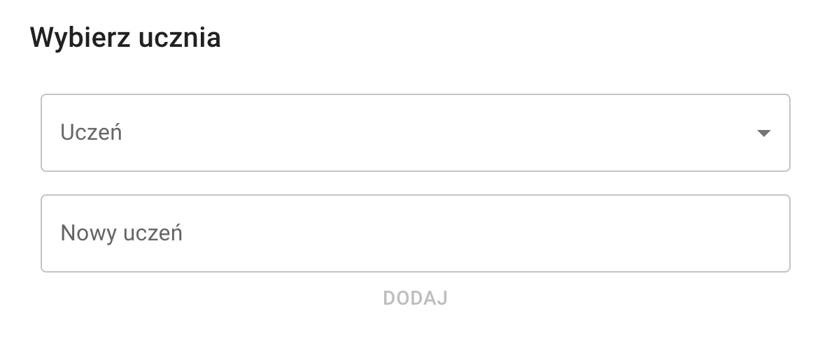 Po zalogowaniu do aplikacji mamy możliwość wybrania ucznia z listy uczniów przypisanych do zalogowanego użytkownika. Terapeci mają możliwość