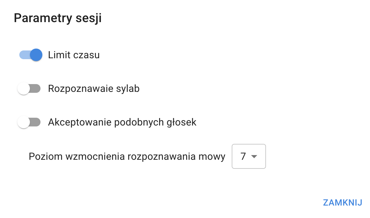 Włączony limit czasu oznacza, że dziecko musi przeczytać zdanie w określonym czasie, w przeciwnym wypadku będzie trzeba je przeczytać